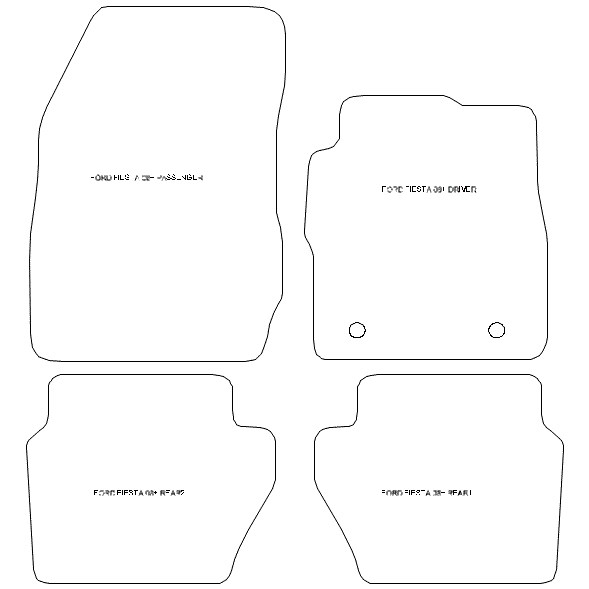 FREE UK Shipping for orders over £49.99 … .Free Coloured Trim SAVE £4.99 - Limited Time Offer. Home >> Ford Car Mats >> Ford Fiesta Car Mats >>Ford FIESTA MK7 Car Mats Ford FIESTA MK7 Car Mats +9 Unsure If This Is Your Car? Please Double Click The Find Button 1Enter Your Car Reg 2Confirm Your Vehicle 3We Send Perfect Fit Mats From Only £24.99 SAVE £10 FREE Trim Upgrade SAVE £4.99 FREE Shipping on Orders> £49.99 Manufactured in the UK Guaranteed Quality and Fit 12 Month Warranty Set of 4 Mats with Fixings Fast, Tracked Delivery Award Winning Service Higher Quality Carpets We offer 4 choices of high quality automotive carpet, plus the option of thick industrial rubber. Automotive carpet is specifically designed to protect your car interior: hard wearing, water resistant, fire retardant with an anti-slip rubber backing. Mat Colour (Standard) Black Grey Beige Blue Mat Colour (Premium) Black Grey Beige Mat Colour (Ultimate) Black Grey Beige Mat Colour (Platinum) Black Grey Beige Black Mat Colour (Rubber -4mm) Black Edging Colour (Cloth) Black Red Beige Grey Blue Green Yellow Navy Edging Colour (Leather) Black Leather Blue Leather Red Leather White Leather Beige Leather Grey Leather Edging Colour (Striped Cloth) Black & Blue Striped Black & Red Striped Black & Black Black & Green Black & Silver Black & Yellow Car Mats Guide Higher Quality Carpets We offer 4 choices of high quality automotive carpet, plus the option of thick industrial rubber. Automotive carpet is specifically designed to protect your car interior: hard wearing, water resistant, fire retardant with an anti-slip rubber backing. Standard Mats 650g – Short Pile, Loop Weave – Rough Touch, More Difficult to Clean – Come With a Heel Pad / Fixing Clips – Available in Five Colours – Fully Customisable Product – Manufactured to Order in the UK (3 Days) Premium Mats 800g – Short "Straight Cut" Pile – Soft Touch and Easy to Clear – Come with a Heel Pad / Fixing Clips – Available in Three Colours – Fully Customisable Product – Manufactured to Order in the UK (3 Days) Ultimate Mats 980g – Short "Straight Cut" Pile – Soft Touch and Easy to Clear – No Heel Pad (carpet too thick) – Available in Five Colours – Fully Customisable Product – Manufactured to Order in the UK (3 Days) Platinum Mats 4070g – Luxury Deep Twist Pile – Easy to Clean – No Heel Pad (carpet too thick) – Available in Four Colours – Fully Customisable Product – Manufactured to Order in the UK (3 Days) Car Mat Gallery A selection from our wide range of carpets, trims and other personalisation Standard Mats 650g Our budget range - effective, hard wearing protection for your car interior. Come with a heel pad for added durability. Premium Mats 800g A premium feel car mat - soft-touch, tufted nylon with a short pile. Come with a heel pad for added durability. Ultimate Mats 980g Our best selling, main dealer equivalent car mats. Short, soft touch pile, extremely durable (no heel pad required), outstanding value for money. Platinum Mats 4070g Our deluxe range - a luxurious deep, twisted pile. Add a touch of class and 'take your shoes off' comfort to your car interior. Rubber Mats Our robust rubber range - industrial style, cross-hatch pattern. Used as car mats OR as 'over mats' to protect your existing car mats. Boot Liners & Bumper Protectors Premium Rubber Boot Liner Lipped Edge Boot Liner Neoprene Bumper Protector Personalisation Embroidered Logo Custom Text Embroidered Logo Select Your Mat Quality All of our car mats come in a set of 4. These mats will fit your Ford Fiesta Car Mats 2008-2011. Please check the image of the mats. The image is the actual pattern used to manufacture the mats. This pattern is identical to the manufacturers original template. Details of the fixings provided with the mats can be seen in the technical specifications tab. Budget Range Loop Weave Pile 550g NEW! Budget friendly car mats will do a great job of protecting your car and come with a heat-weld heel pad. Black £24.99 was £34.99 Standard Loop Weave Pile 650g Our Standard range - effective, hard wearing protection for your car interior. Come with a sewn-on heel pad for added durability. £29.99 was £39.99 Premium Soft Tufted Nylon 800g A premium feel car mat - soft-touch, tufted nylon with a short pile. Come with a heel pad for added durability. Black Mid Grey Sand Beige £44.99 was £54.99 Ultimate Thick Tufted Nylon 980g Our best selling, main dealer equivalent car mats. Short, soft touch pile, extremely durable (no heel pad required), outstanding value for money. Black Red MidGrey Sand Beige Blue £59.99 was £69.99 FREE Shipping Platinum Twist Wool Effect 4070g Our deluxe range - a luxurious deep, twisted pile. Add a touch of class and 'take your shoes off' comfort to your car interior. Black Carbon Grey Beige £99.99 was £109.99 FREE Shipping Rubber Cross Hatch Rubber Our robust rubber range - industrial style, cross-hatch pattern. Used as car mats OR as 'over mats' to protect your existing car mats. Black £49.99 was £59.99 FREE Shipping Select your colour This quality of car mat is available in the following selection of colours: Black Confirm your Order Your order is for Mat Quality: BudgetCarpet colour: Black MatEdge Colour: Black Edge These mats will be produced with a 'black' edge Budget Express Checkout You Only Pay: £24.99 Was £39.9924.99GBP Customer Reviews Add Personalisation? If you would like to customise the look of your mats by adding a coloured contrasting edge or a logo / custom text, please see the options below. Add a Contrasting Edge Cloth, leather and suede Constrasting Cloth Edge. now only £0.00 Saving £4.99